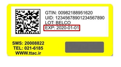 EXP حروفی اختصاری برای نشان دادن تاریخ انقضای محصول است که به تاریخ میلادی و به این صورت (YYYY-MM-DD) درج میشود.